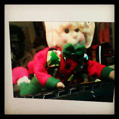 He also stayed up late one night and watched TV and ate a BUNCH of snacks, took a nap under the tree in one of KayTar's baby cradles, and maybe something else I am forgetting. He sure was a BUSY elf! We thought he was gone and had left with Santa, but I guess they stopped back by on their way home to drop off one last surprise! Twinkle brought KayTar's new American Girl doll a sock monkey hat, brought BubTar a Gamestop gift card to get a game for his new XBOX, and brought them both some fun crazy straws and an indoor snowball fight...and he brought us a bottle of wine, perhaps to apologize for all of the messes he made! Oh, what a month it has been. I think I will need a whole year to recover!