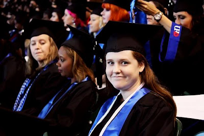 I graduated with honors this past Saturday! Feels super good to be done! Originally, I planned to go to medical school next, but I'm not willing to sacrifice that kind of time anymore. KayTar is my #1 patient and the rest can wait. Knowing your kiddo has a progressive disease really reinforces the message that time is a limited and precious commodity and something just are not worth the cost. A PA graduate program is definitely on my radar for the future, if/when the time seems right, but for now I'm just DONE! Hooray. We all survived! Yesterday at her doctor's appointment, KayTar was telling everyone (receptionist, doctors, random folks on the elevator) "My mom graduated from college this weekend!" :)